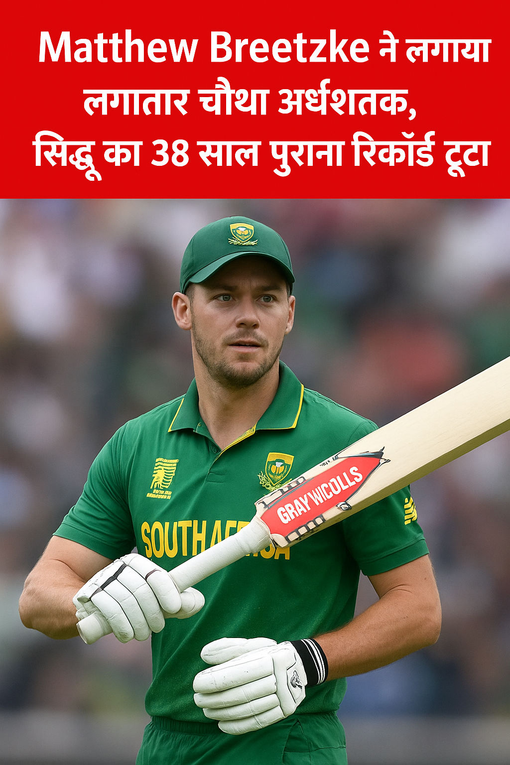 Matthew Breetzke ने लगाया लगातार चौथा अर्धशतक, सिद्धू का 38 साल पुराना रिकॉर्ड टूटा दक्षिण अफ्रीका के युवा बल्लेबाज़ Matthew Breetzke ने ऑस्ट्रेलिया के खिलाफ शानदार प्रदर्शन करते हुए वनडे क्रिकेट में इतिहास रच दिया है। उन्होंने अपने करियर के शुरुआती चार वनडे मैचों में लगातार चार अर्धशतक लगाए हैं। इसके साथ ही Matthew Breetzke … Read more